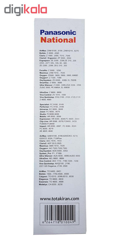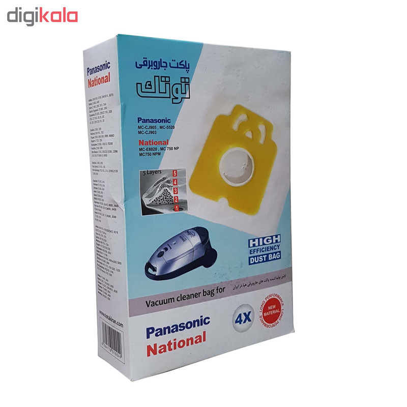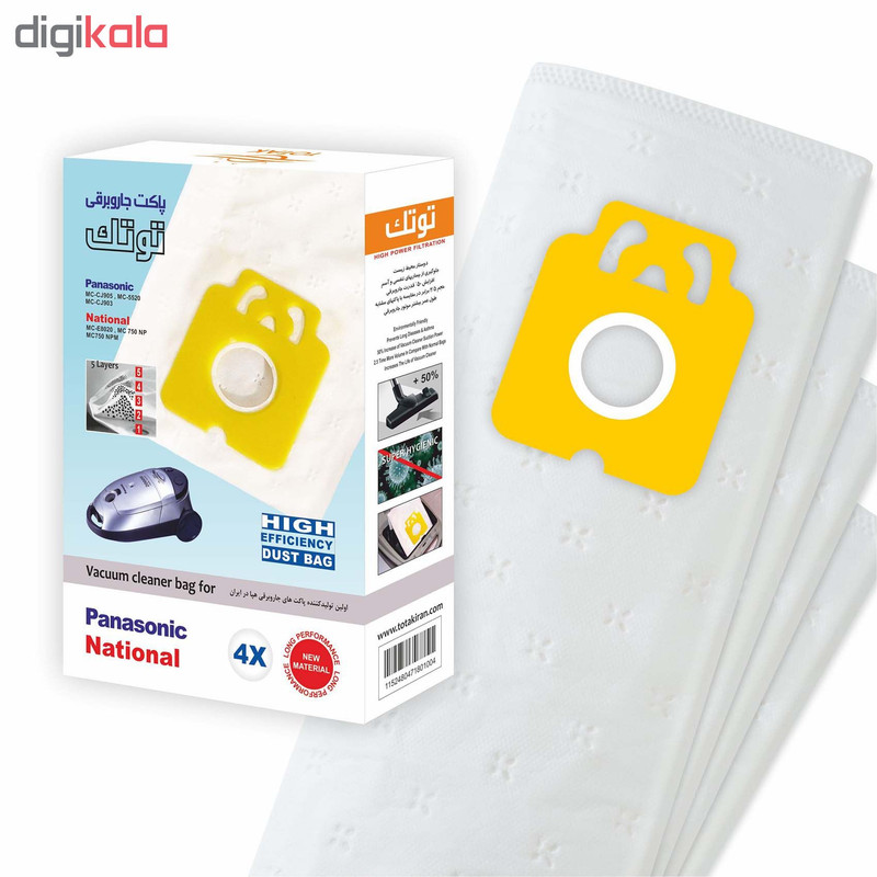 پاکت جاروبرقی توتک بسته 4 عددی مناسب برای جاروبرقی های ناسیونال و پاناسونیک