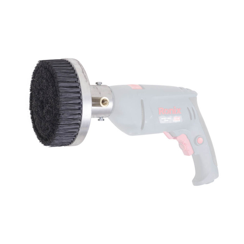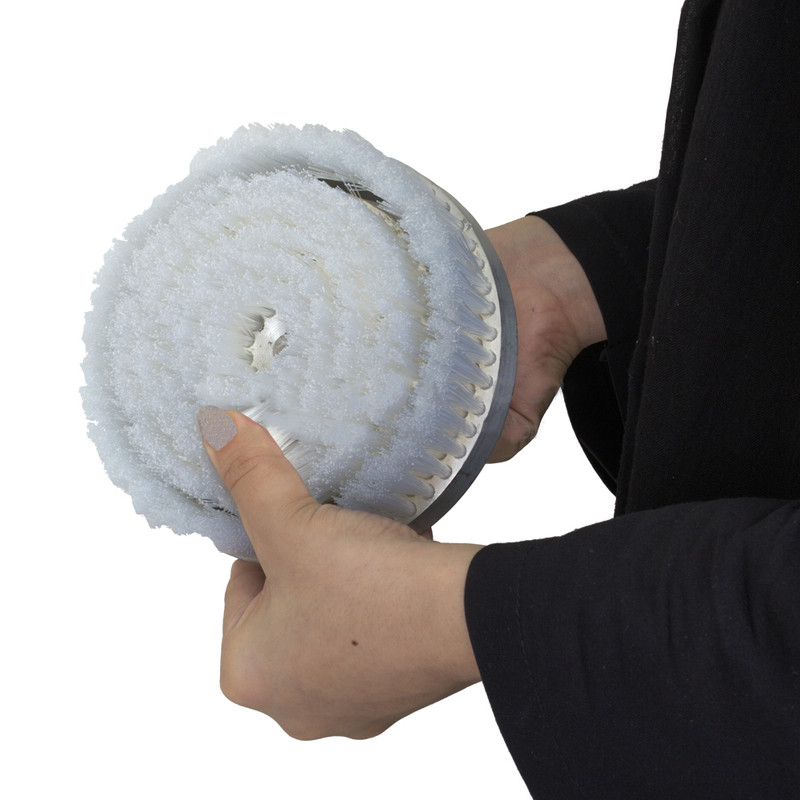 فرچه (برس) مبل شویی حرفه ای مخصوص کد 2800 اتصال به دریل ، با قطر 11 سانتیمتر از جنس پرلون و دارای محافظ پاشش آب و کف به اطراف ، در مدل های فرچه نرم ؛ متوسط و زبر میباشد. شستن مبل توسط دست کاری مشکل و زمانبر است . استفاده از ابزارهای حرفه ای می تواند بسیار در سرعت کار موثر باشد و برای شستن مبل؛صندلی؛ کاناپه و حتی فرش میتوان از فرچه مبل شویی آذین براش استفاده نمود.موی این مدل از پرلون است که جزو مقاوم ترین نوع الیاف صنعتی می باشد هم ضد سایش است و هم بسیار سخت حالت می گیرد.بدنه این فرچه از آلومینیوم ریخته گری می باشد که بسیار محکم و در عین حالت به نسبت سایر فلزات سبکتر میباشد.در صورت نیاز به اتصال مخزن آب و مواد شوینده (سمپاش استیل) قطعه کناری وجود دارد که به صورت پیچی متصل می گردد.فرچه مبل شویی دارای برس داخلی و برس بیرونی ثابت جهت شستشوی راحت مبل و صندلی و پاشیده نشدن آب به اطراف می باشد.این برس مناسب جهت دریل ها با شفت داخلی 13 می باشد و به دریل های شفت 10 و 16 متصل نمیشود.